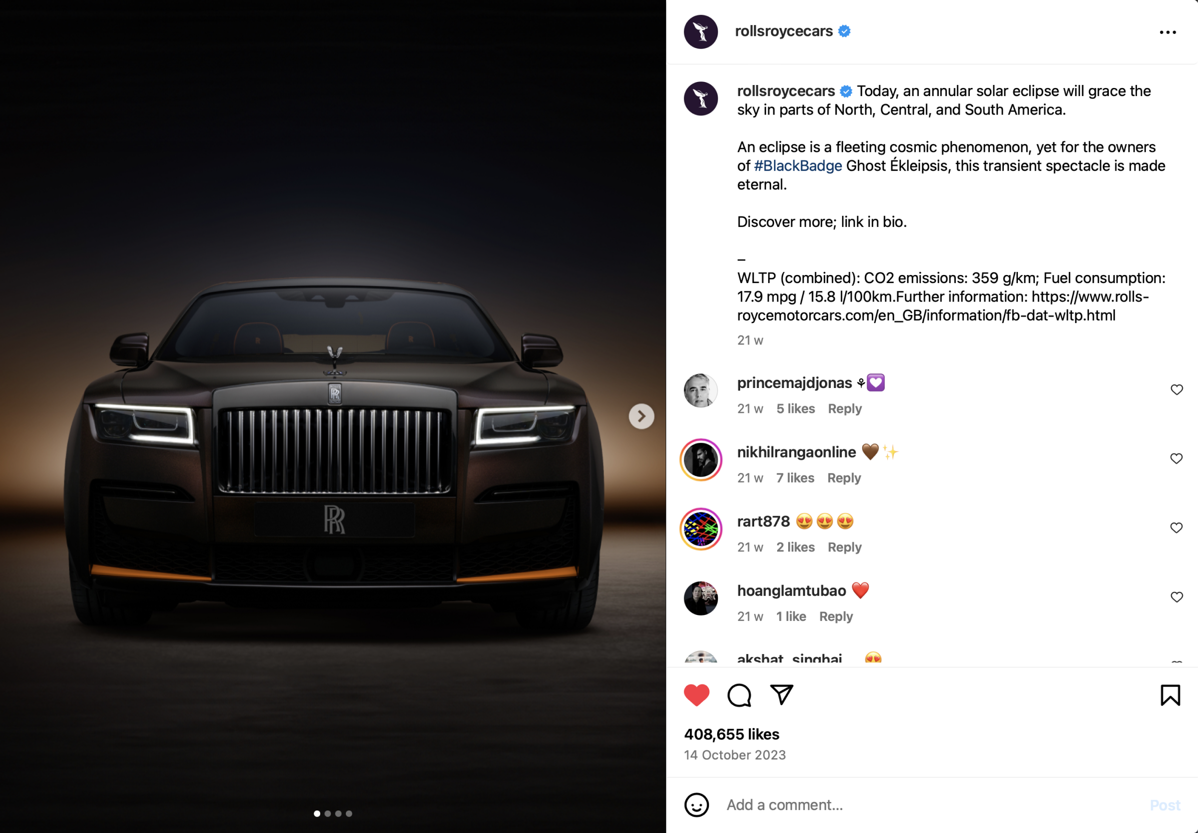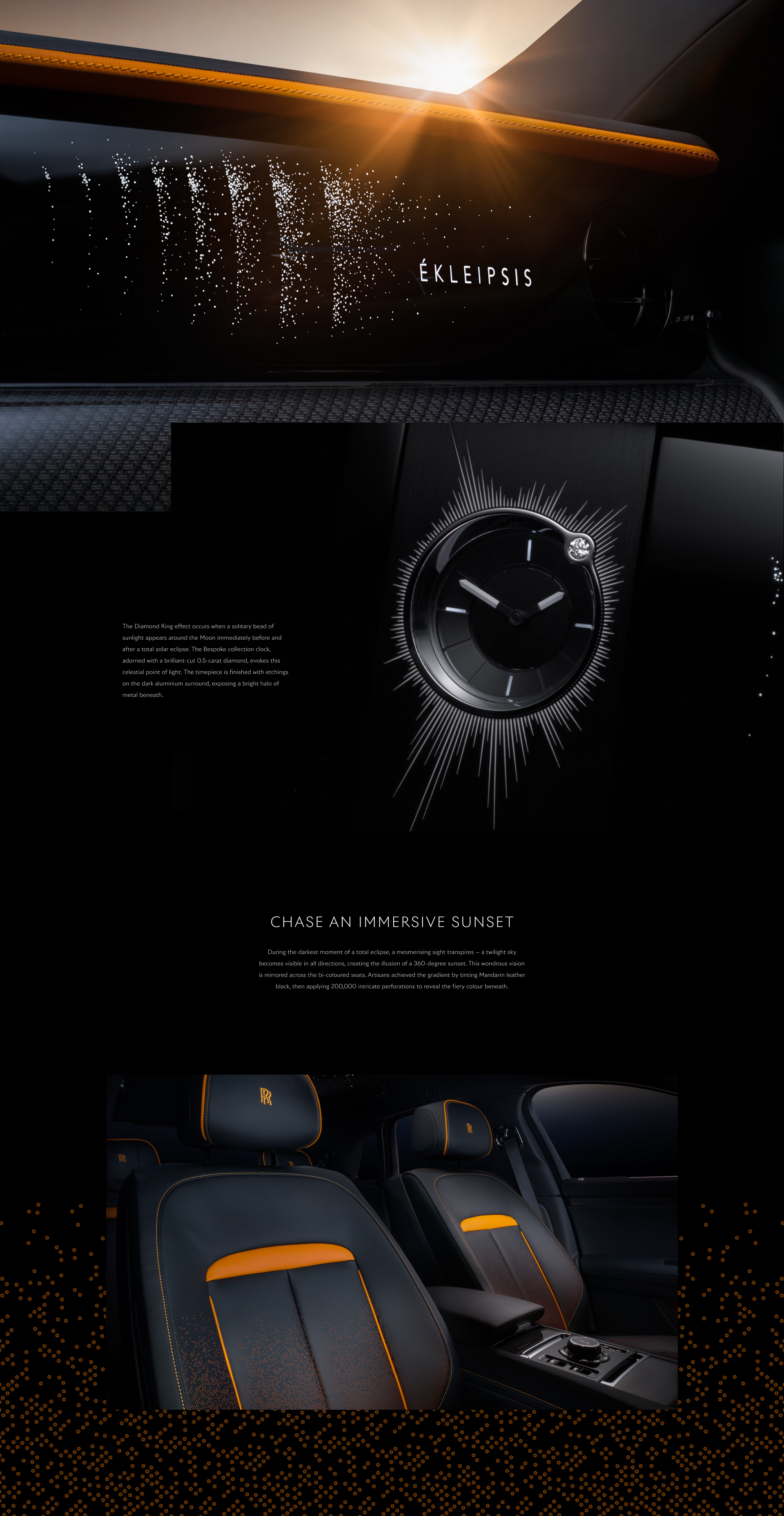 Black Badge Ghost Ékleipsis, a celestial private collection car from Rolls-Royce Motor Cars, is inspired by the captivating allure of a solar eclipse. As lead copywriter and content manager, I envisioned a launch campaign that explored the car’s transcendent essence across Rolls-Royce’s website and social media channels.